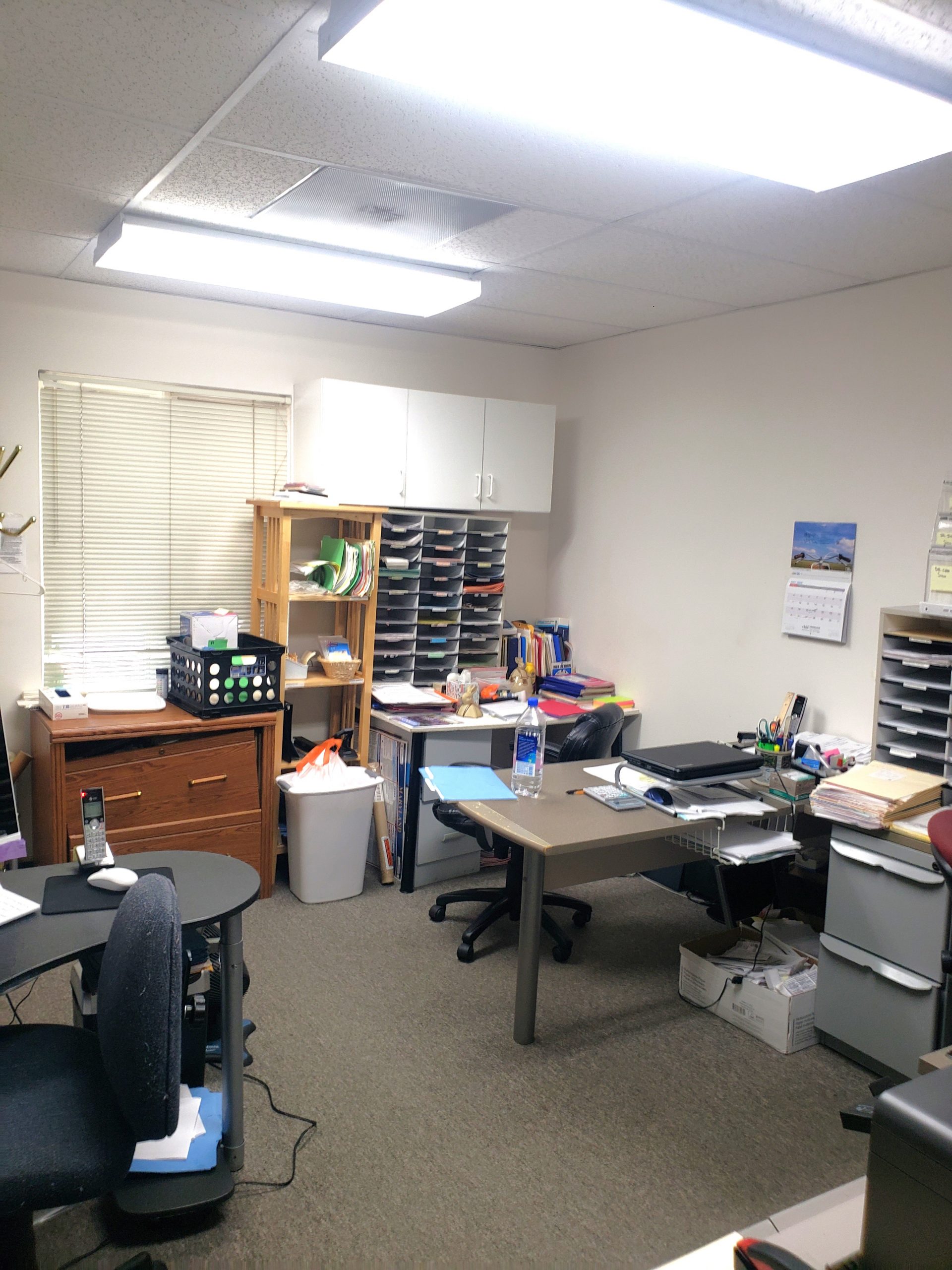 • Features reception/waiting area, business office with sliding window & counter, multiple offices, kitchenette/hand washing station and private restroom.